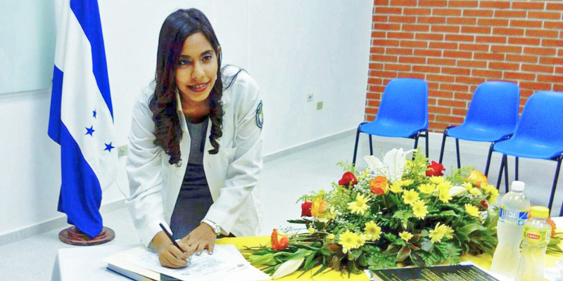 She also saw the great need for doctors. “When I was growing up, there were just a few physicians. It was very hard to be seen.” She earned her MD at Universidad Nacional Autónoma de Honduras in 2017, then moved back to her hometown to work as a primary care physician for two years. She estimates she would see up to 35 patients a day.