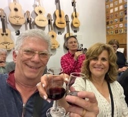 Jeff Maen sipping wine in Porto, Portugal, a year after his surgery.
