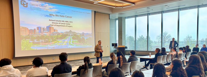 Richard Schulick, MD, MBA, director of the University of Colorado Cancer Center, did not mince words in giving a conference room full of high school students an overview of cancer on April 18 during Learn About Cancer Day.