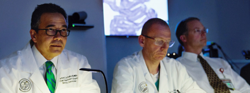 CU Cancer Center Director Richard Schulick, MD, MBA (left) at a multidisciplinary clinic.