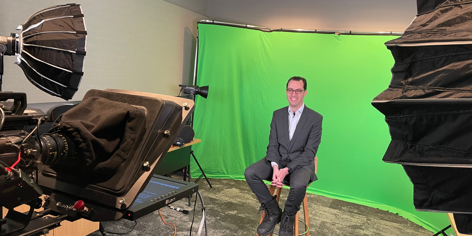 Jorge Monge, MD, filming the multiple myeloma videos in February 2025.