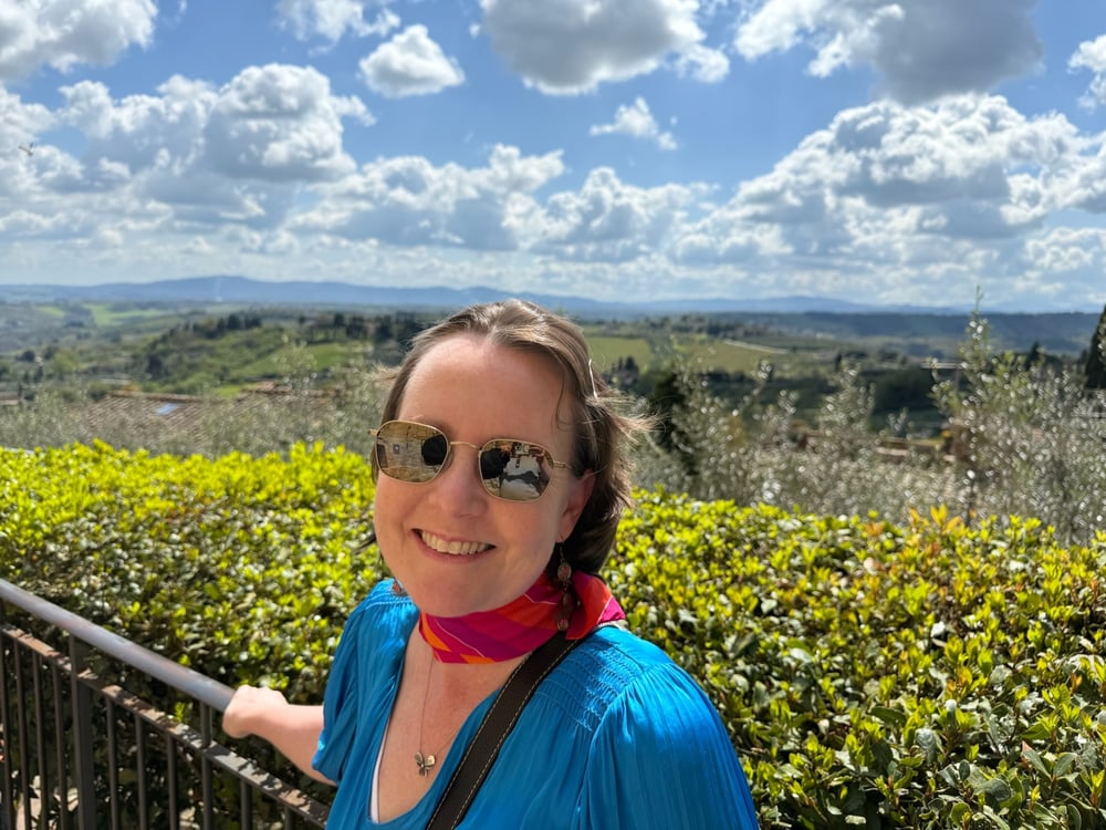 Angela Harkoff smiling while in Italy in April 2025. Image courtesy of Harkoff.