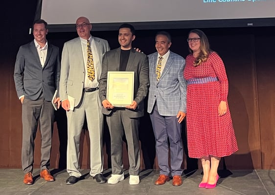 Shahyan Bakhtiyar, MBBS, poses with Richard Schulick, MD, MBA, Mark Nehler, MD, and others after winning the Frederick L. Grover Award in Clinical Science Research.