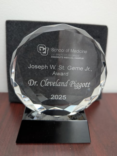 Dr. Piggott is known for his wit, unwavering dedication, and charismatic personality. He is truly deserving of this award and receiving the Joseph St. Geme Jr. Award will influence his work going forward by fostering change, in the best way he knows how.