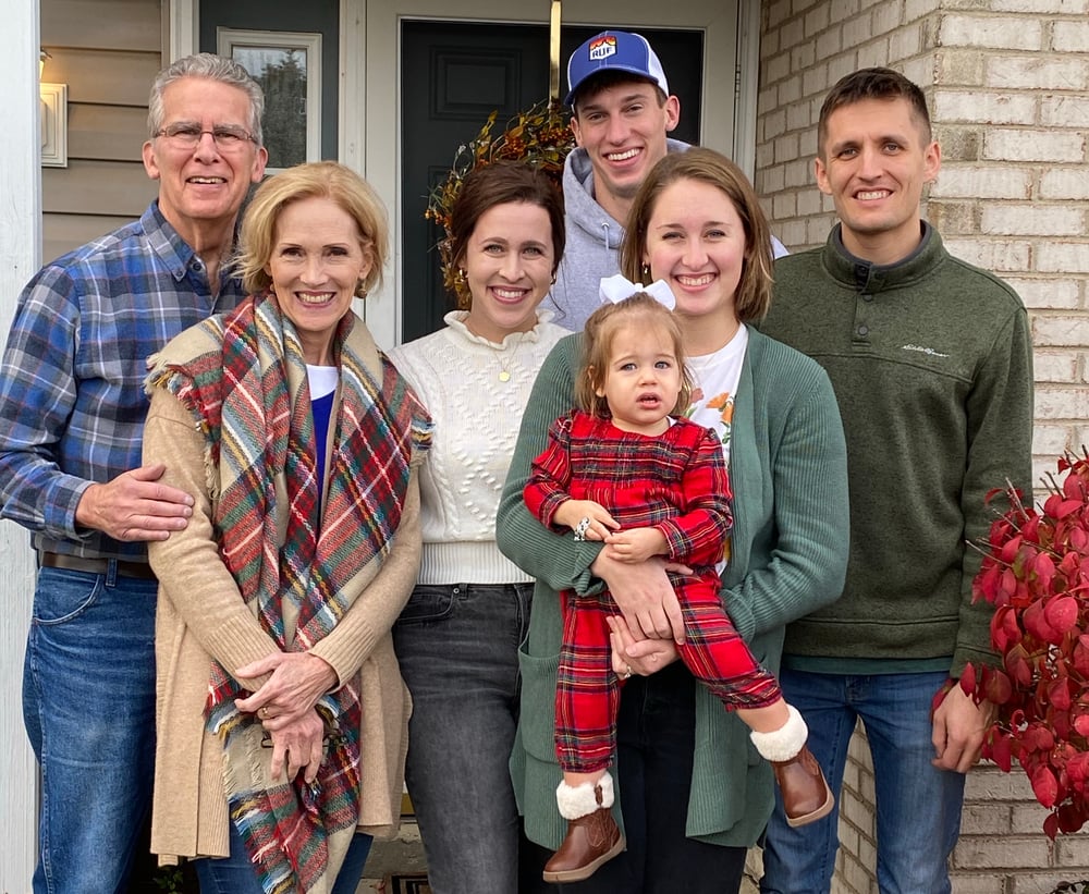 Daniel Saks, wearing a hat, smiles with his family while visiting Ohio in November 2021. Image courtesy of Saks.