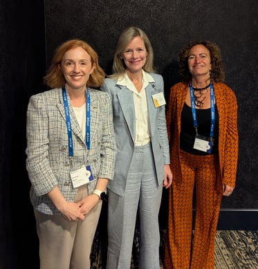 Participants Emmy Betz, MD, left, and Julie Cooper, PhD, right, pose for a photo with Lotte Dyrbye, MD, MHPE.