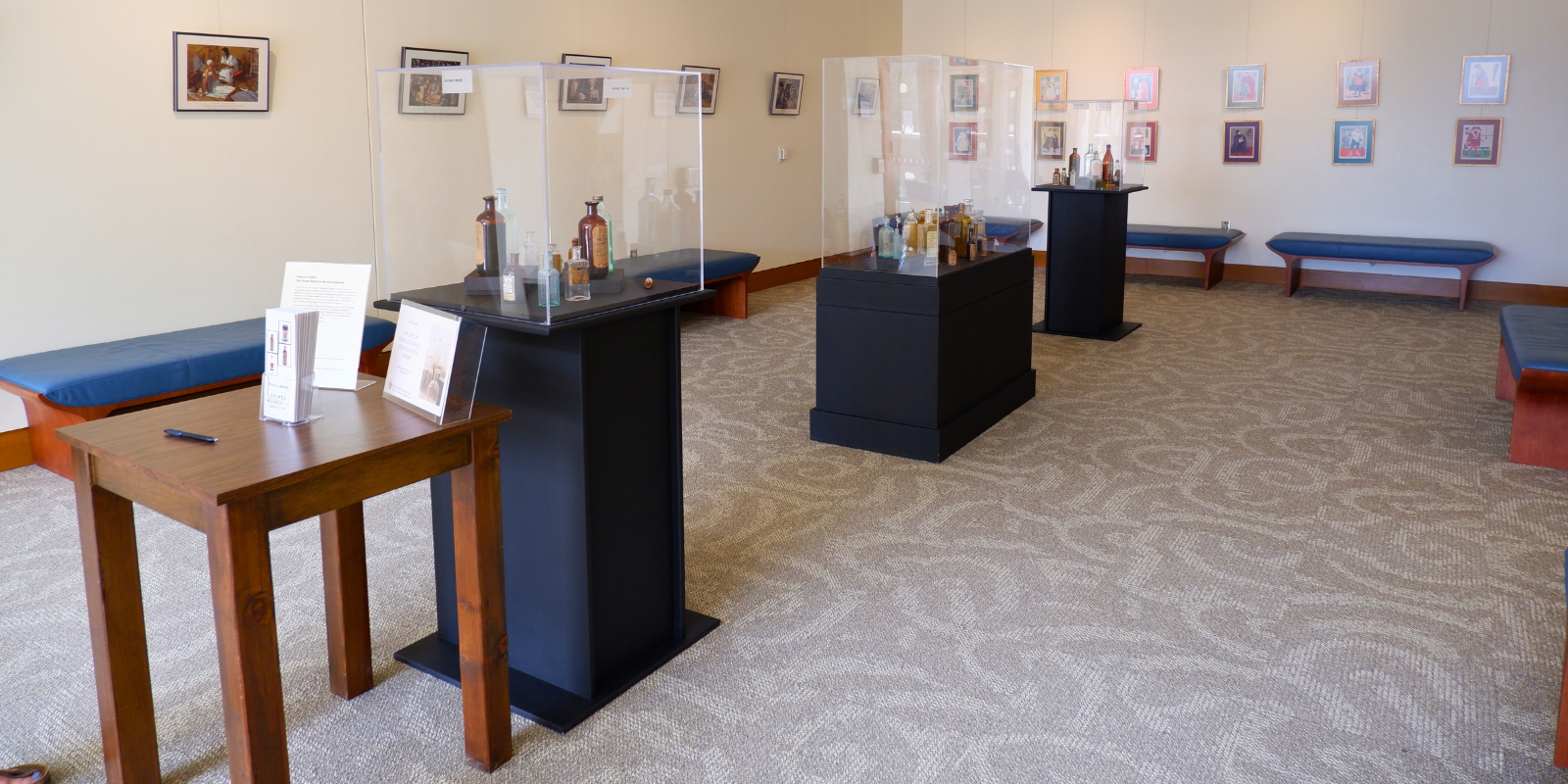 “We’re proud to have this collection,” says Wendy Kisicki, a technical services specialist who helps develop the library’s artifact exhibits. “To see the different kinds of bottles and containers is quite interesting, because you can imagine walking into a pharmacy in the early 20th century and see these line the walls. There’s a lot you can learn about the historical development of pharmaceuticals and medicine by examining the various containers and their content labels.”