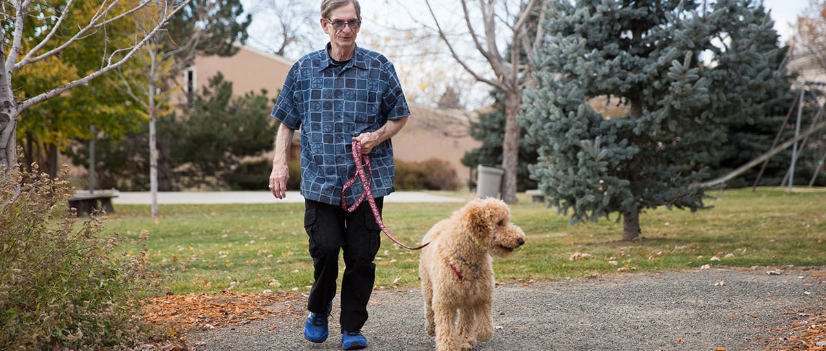 A year ago, HIV patient Louis Zimmerman considered himself sedentary. But thanks to his participation in a CU Anschutz exercise study, he now is able to walk his one-year-old poodle, Doodles, four times a day.