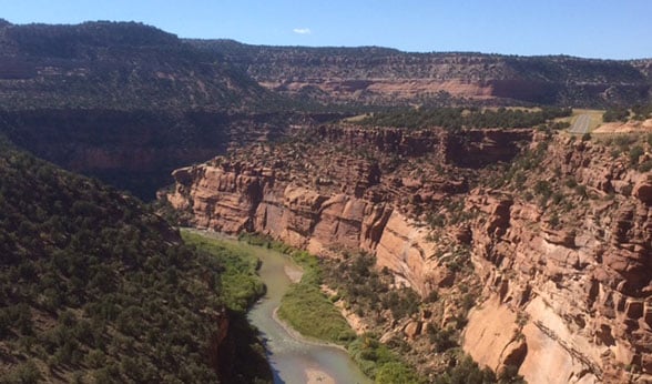 The San Miguel River flows through red sandstone canyons north of Nucla-Naturita.