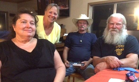 Longtime Nucla residents enjoy the service provided by Don Colcord, CU alumnus. At far right is Joe Rice, who says, "Don has got all the answers" to health care concerns.