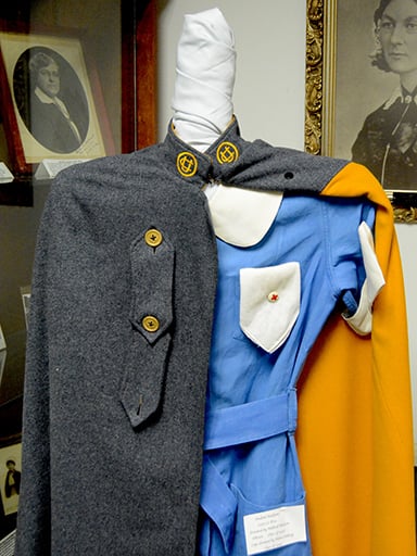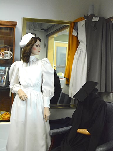 Traditional nursing uniforms are part of the many items on display in the Nursing History Center.