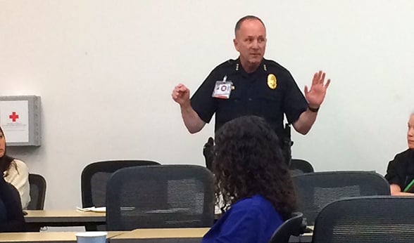 CU Anschutz Police Chief Randy Repola makes a point during the active harmer presentation on May 13.