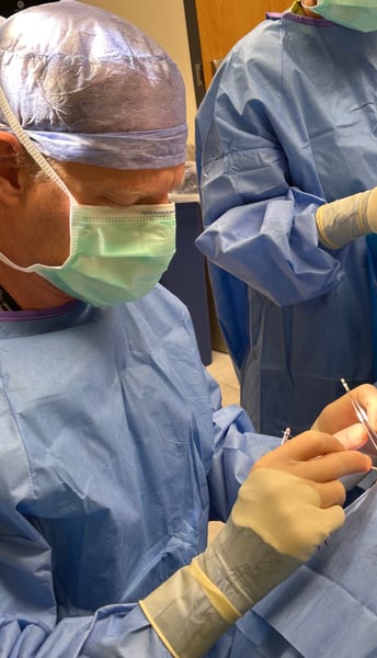 Eric Hink, MD, left, operates on an eye. Image courtesy of Hink.