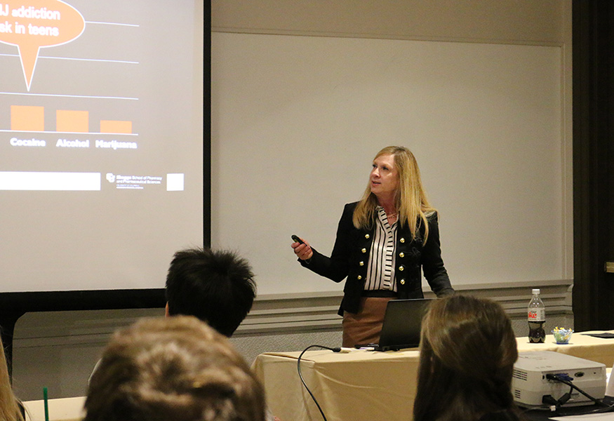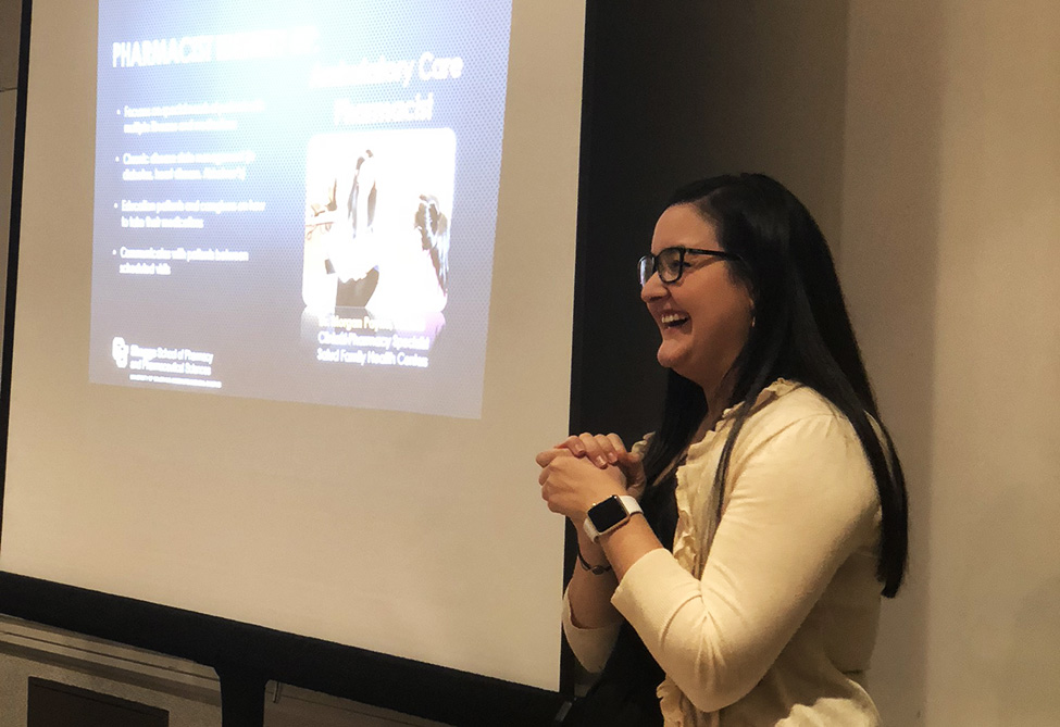 Faculty member Jacci Bainbridge, PharmD, FCCP, shared some of her research on medical marijuana, while faculty members Jennifer Petrie, PharmD, Sue Finstrom, alumna Julia Rawlings, PharmD, and fourth-year student Megan Wary assisted with judging the pharmacy practice competition. Instructor Finstrom also hosted a pharmacy mixology activity.